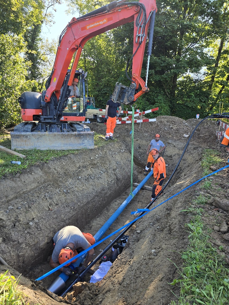 Erfolgreiche Verlegung einer neuen Gussleitung in einer Wasserschutzzone in Riehen