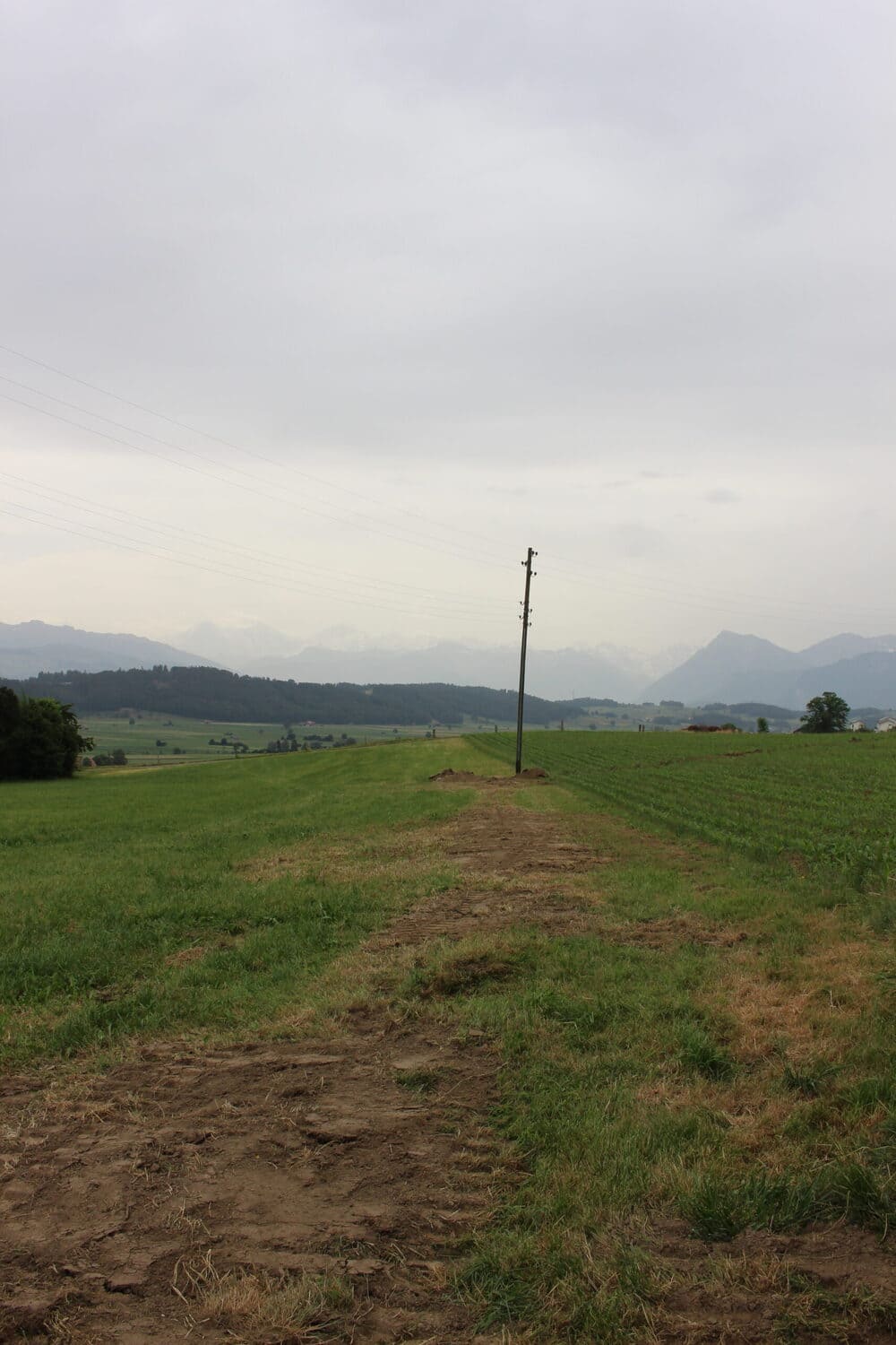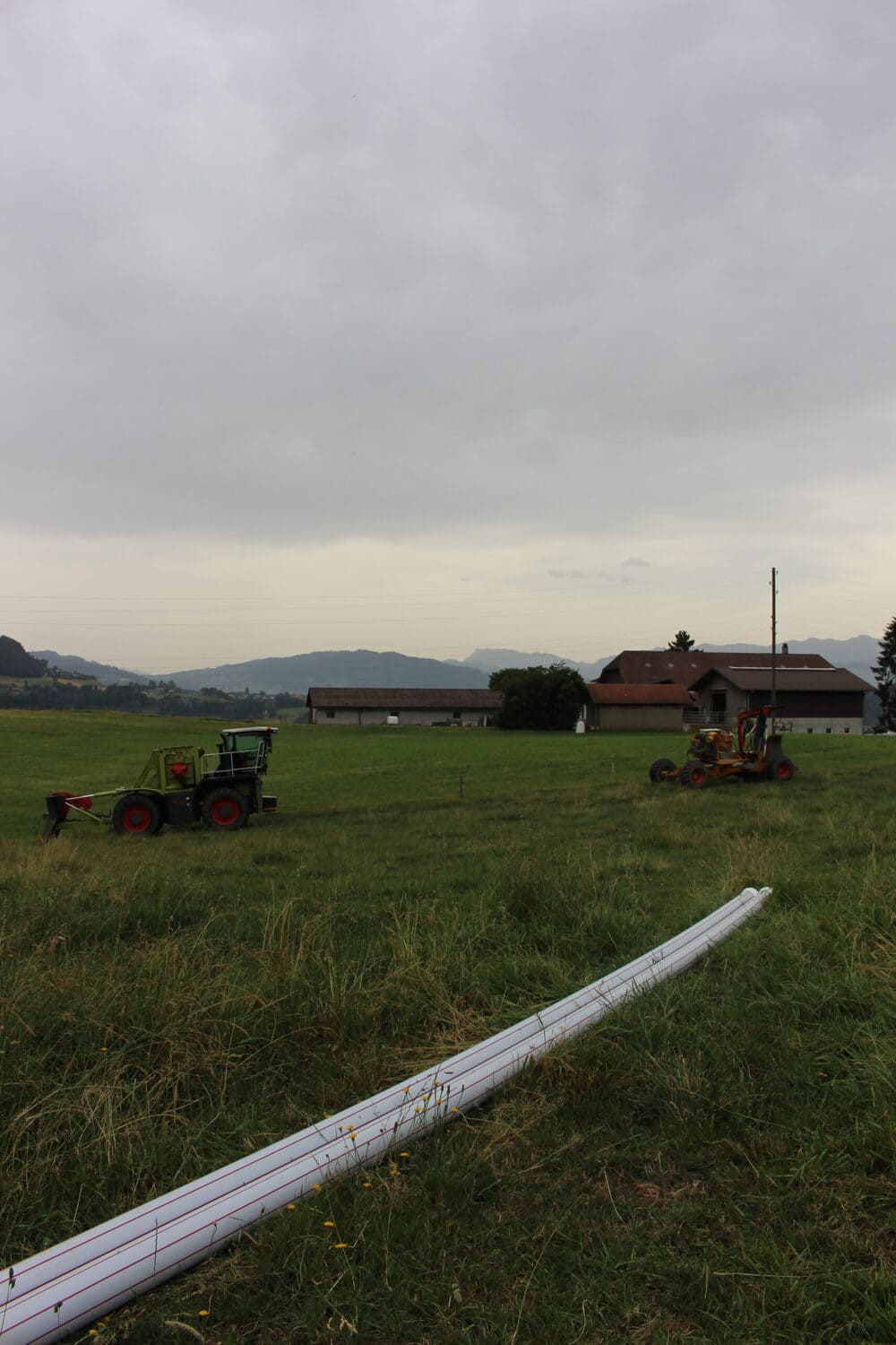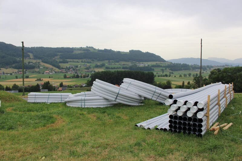 Die Leitung verläuft durch diverse Grundstücke wie Weiden, Getreide- und Maisfelder.